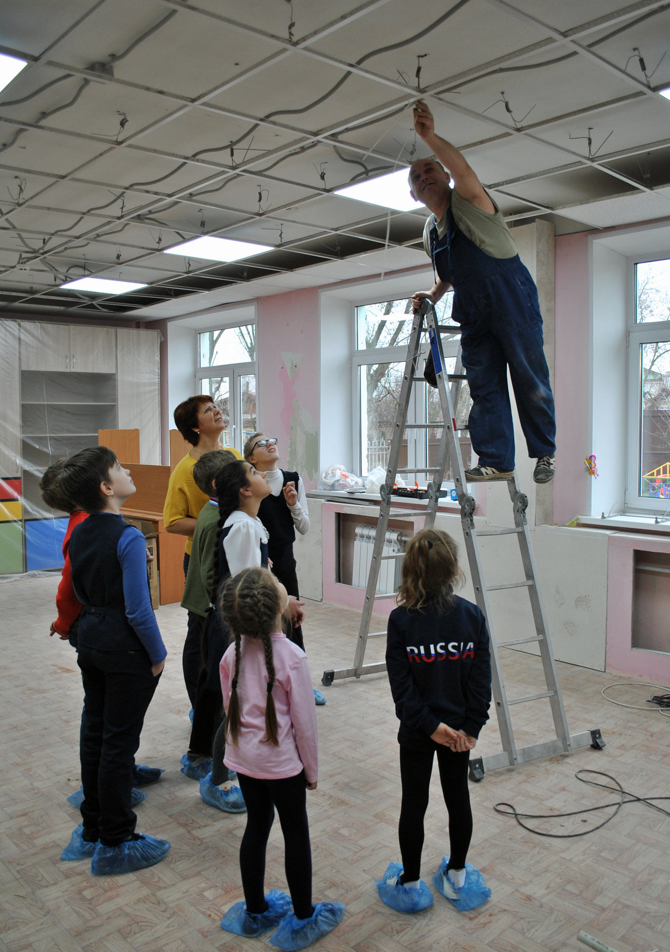А чтобы узнать некоторые тонкости профессии, ребята вместе с педагогами посетили наше отделение ранней абилитации, где сейчас идет текущий ремонт. Дети с интересом пообщались с настоящими строителями, подержали в руках инструмент, познакомились со строительным материалом.