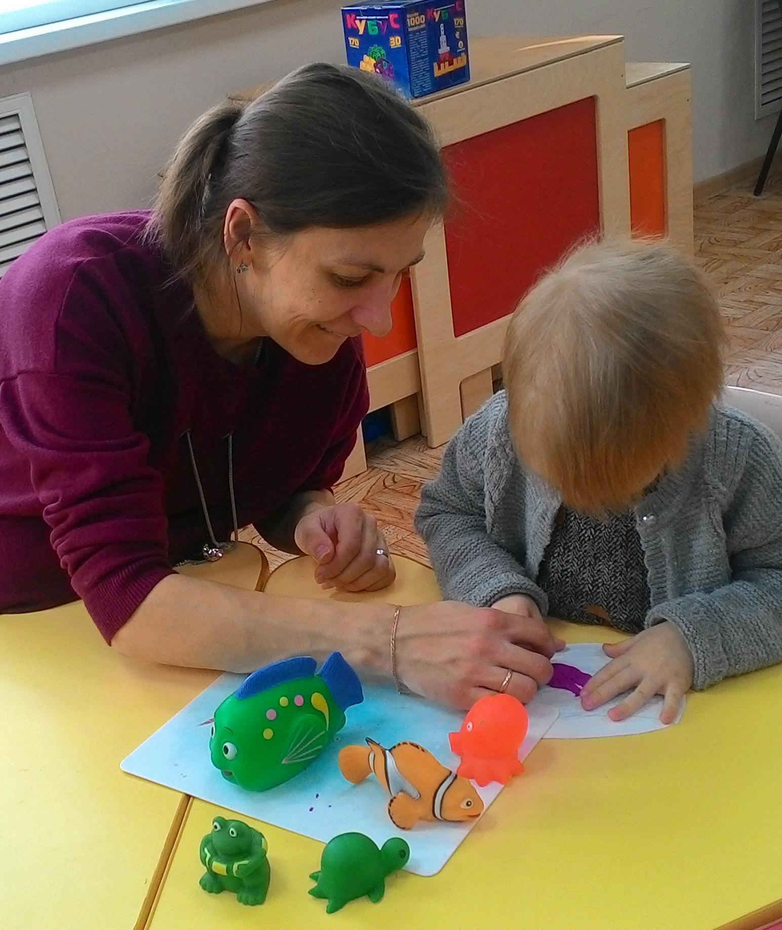 На этой неделе специалисты отделения ранней абилитации провели занятия с детьми на тему «Наша планета». В игровой форме ребята нашли сходства и различия между озерами и реками, рассмотрели глобус. Поговорили о реке Оке, протекающей вдоль нашего города. Представили себя рыбаками и поиграли с камушками и рыбками.